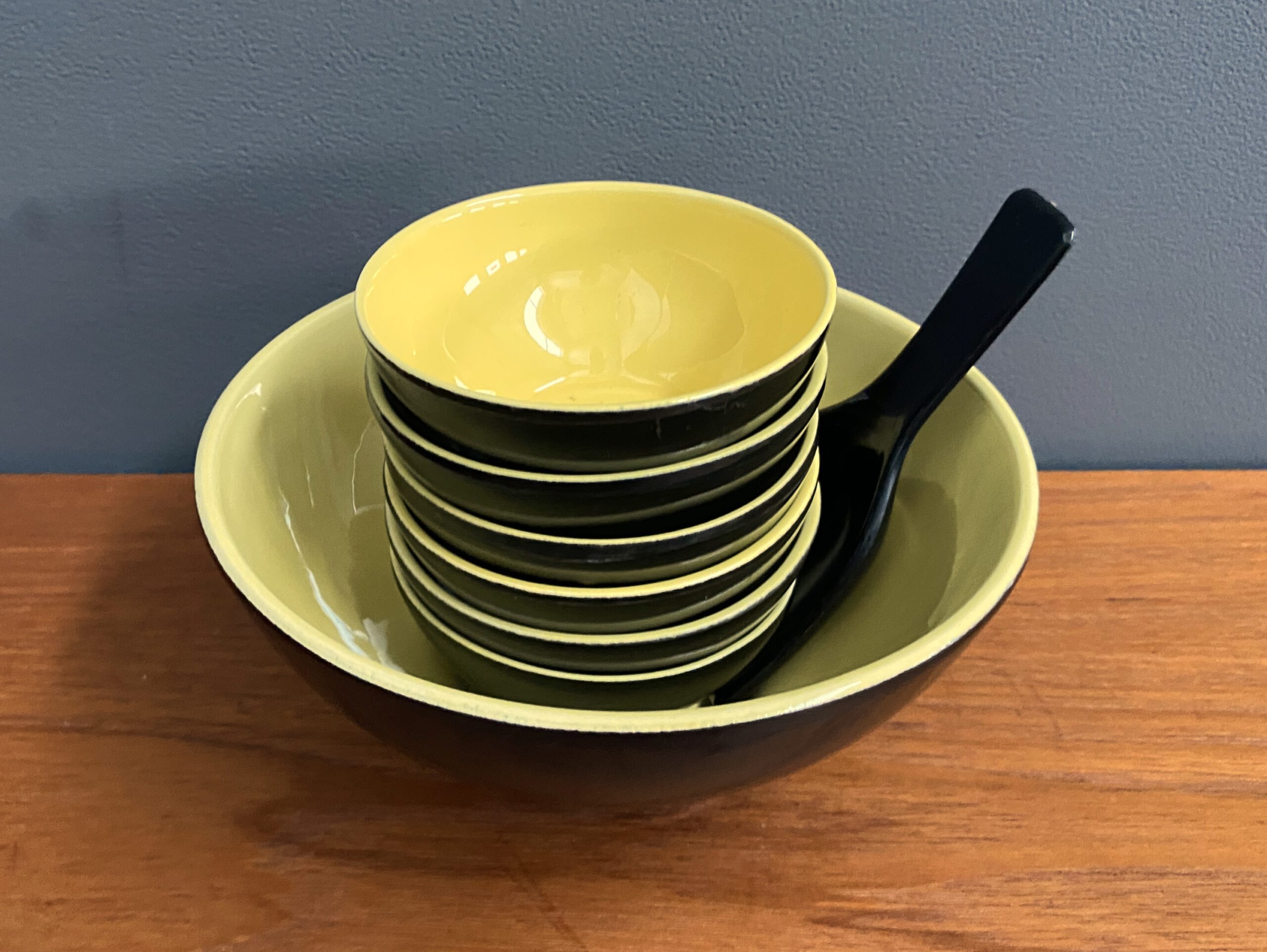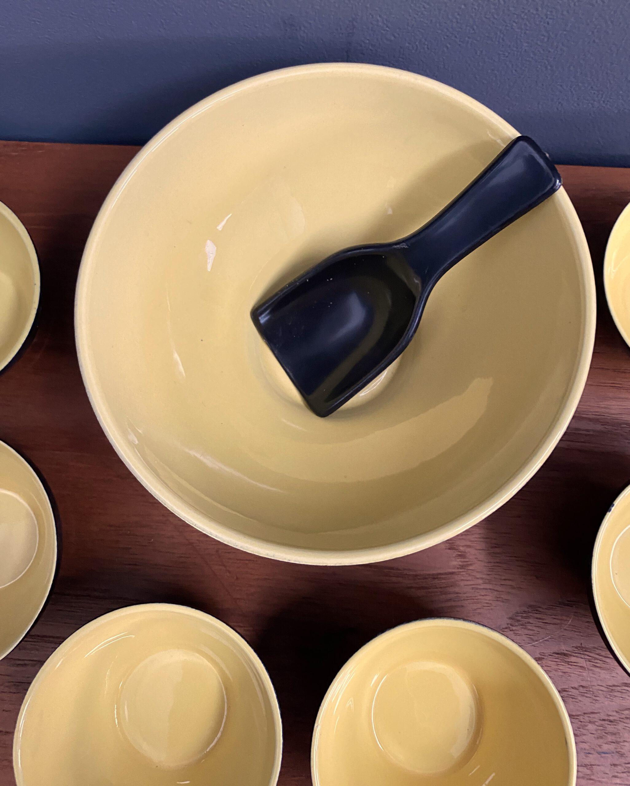 Ceramic black and yellow nuts dispender set 1960s