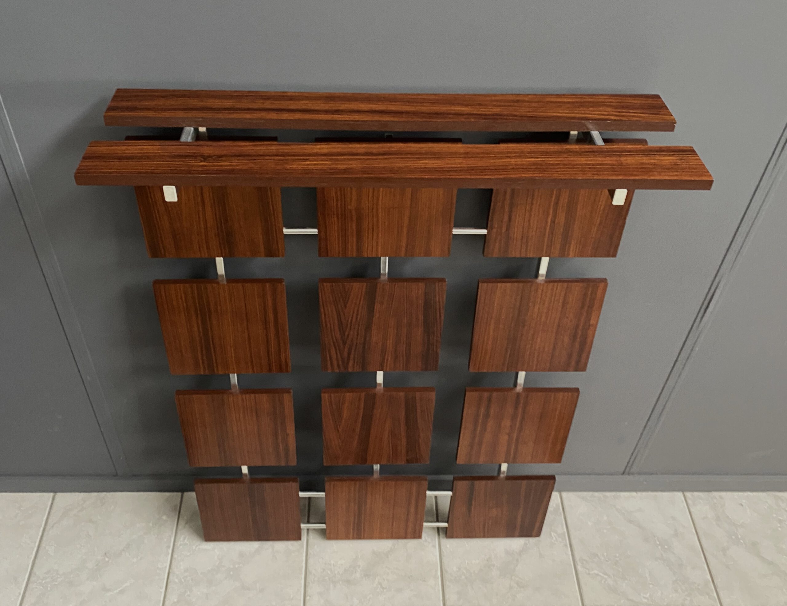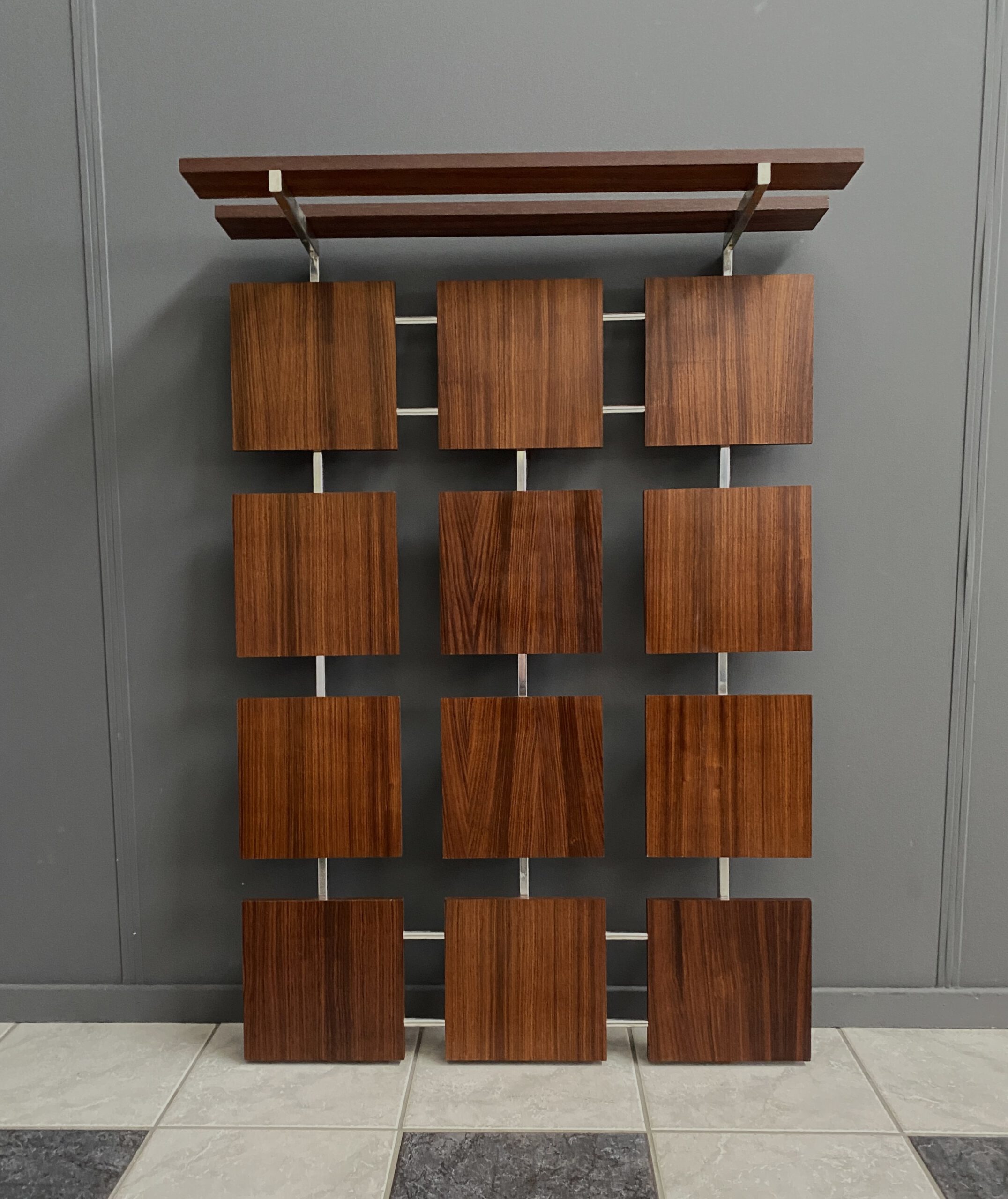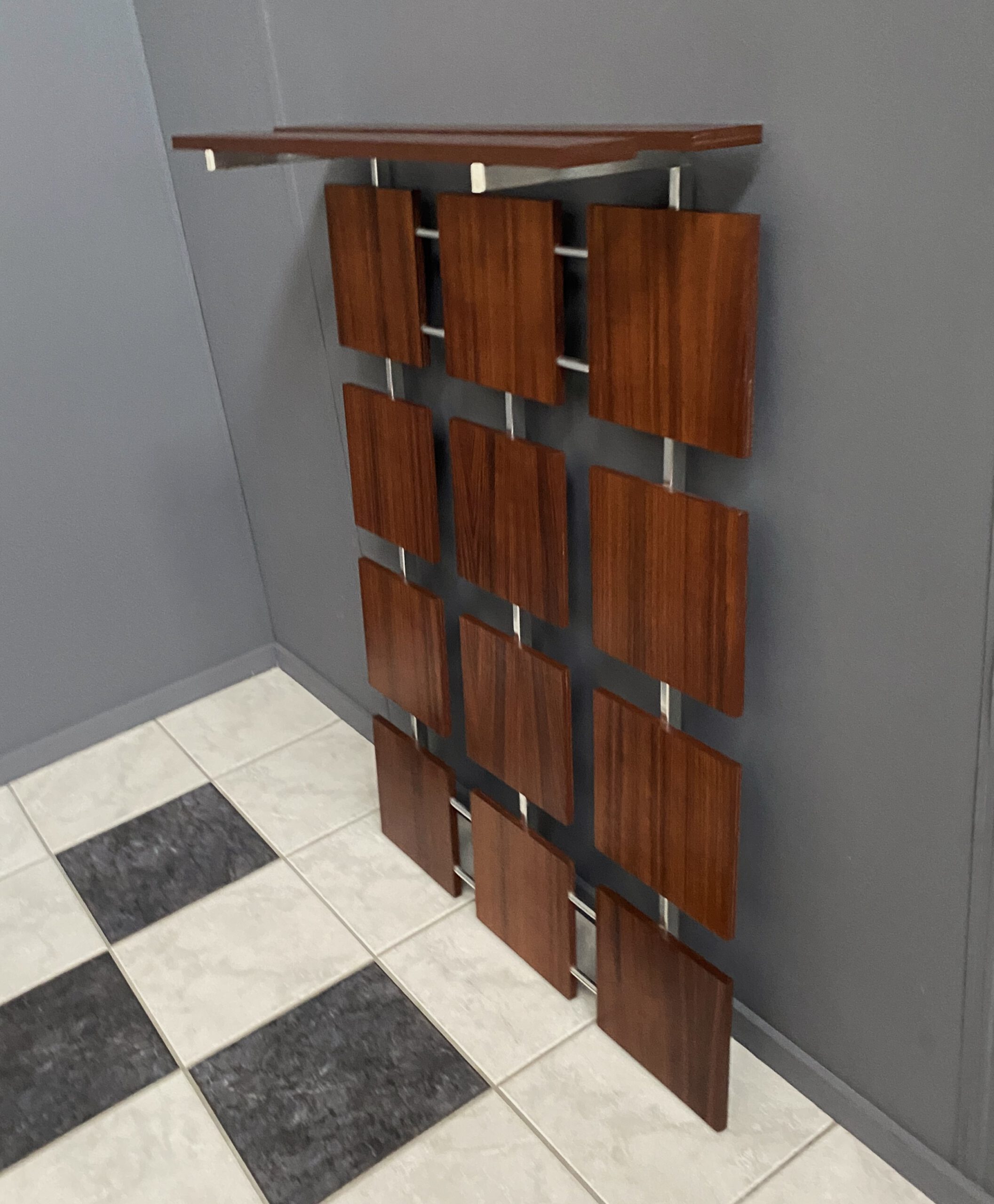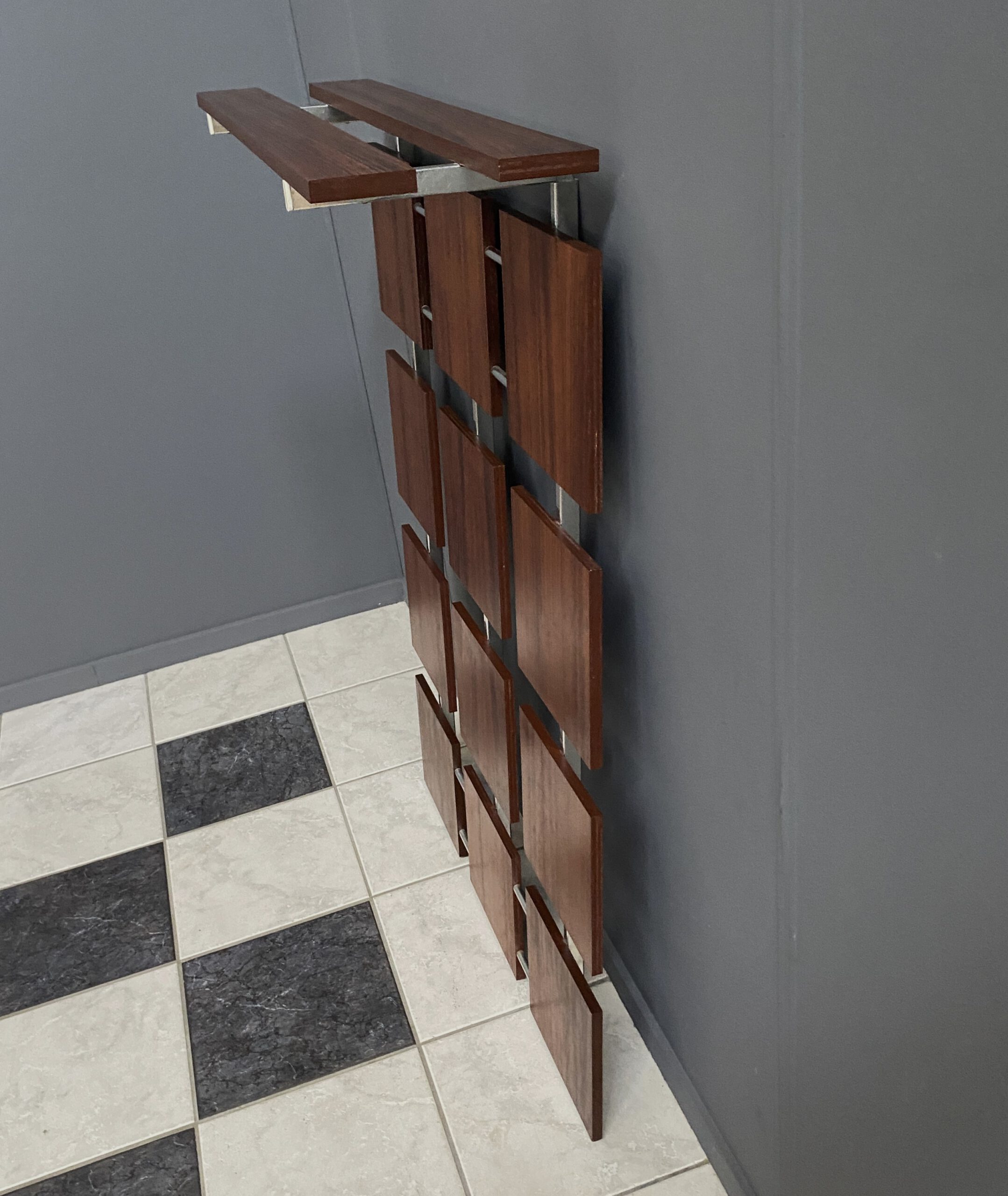 Coat rack wall unit in palisander wood veneer and chrome 1960s