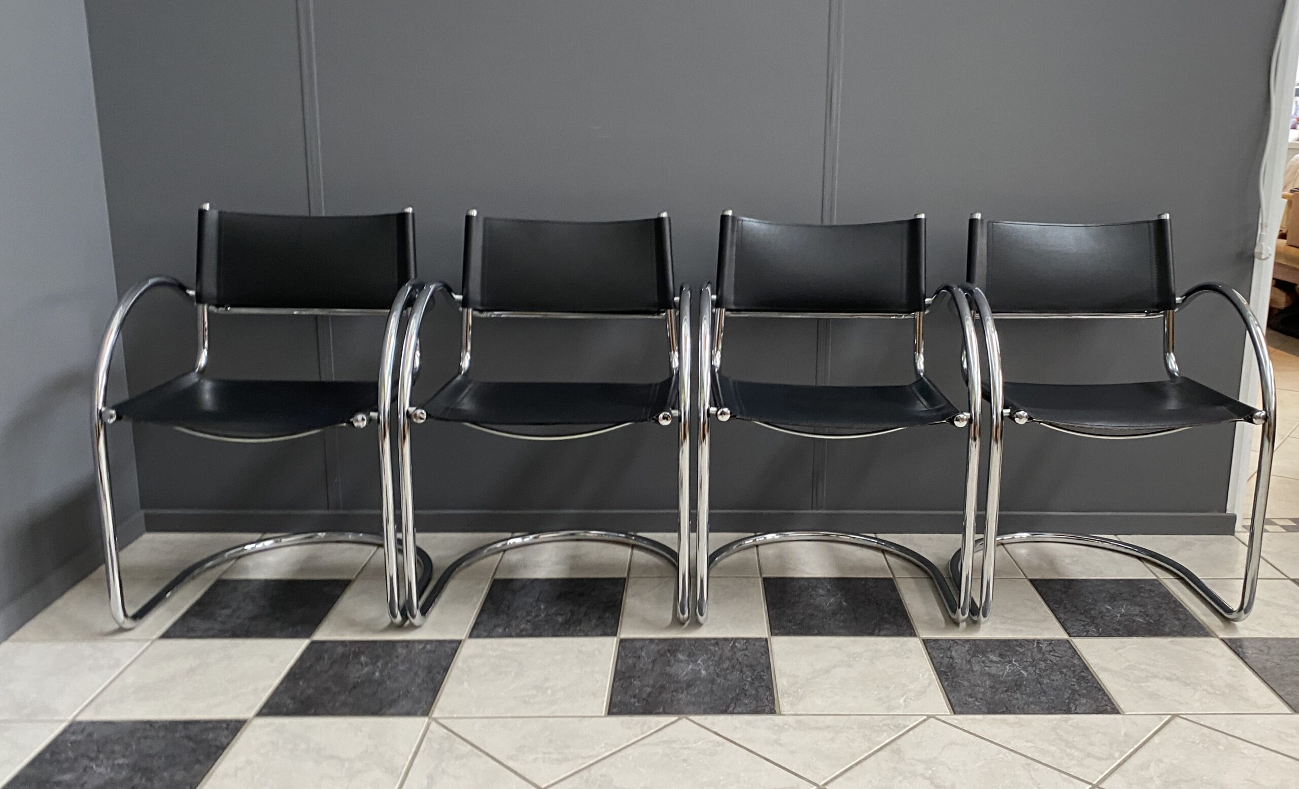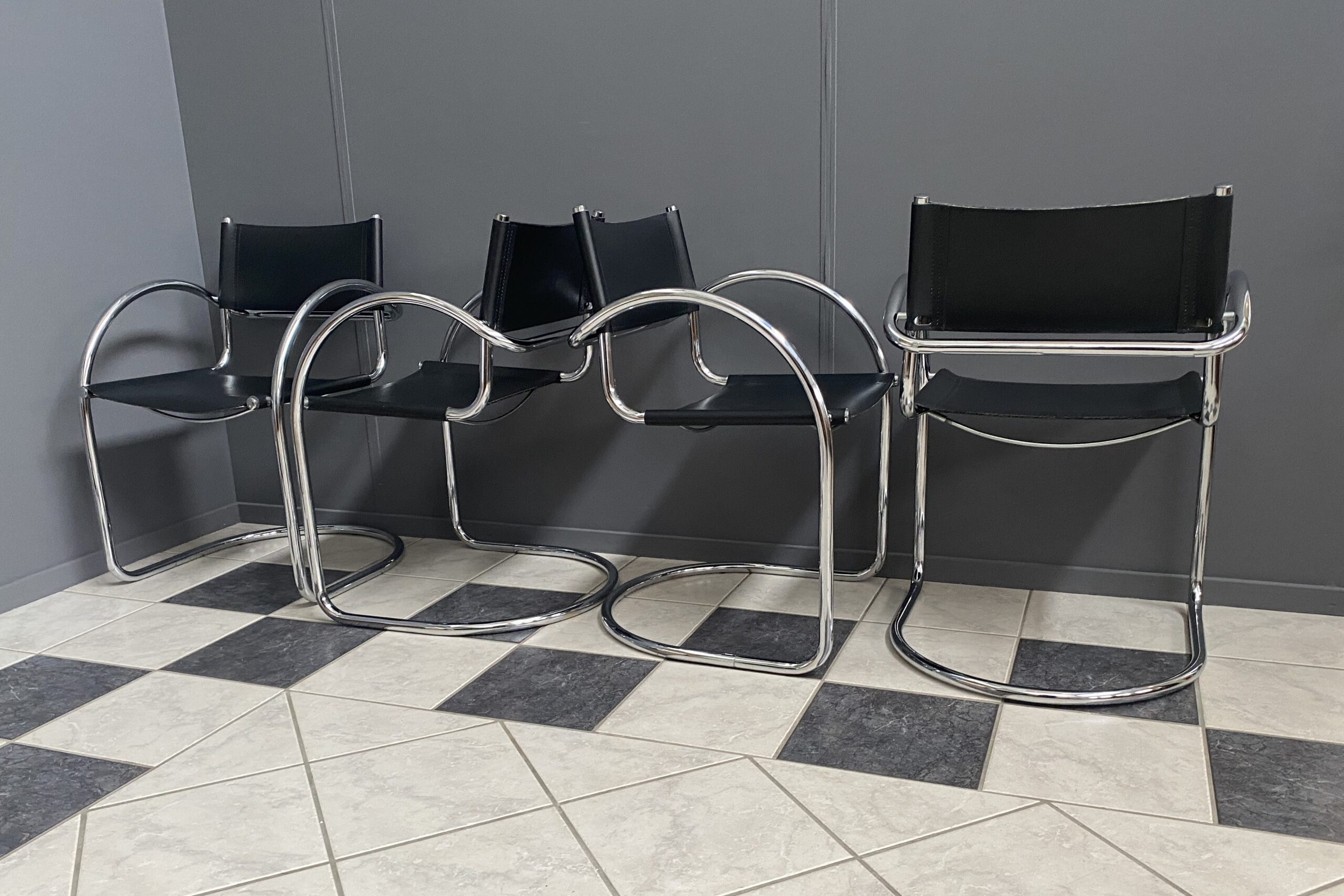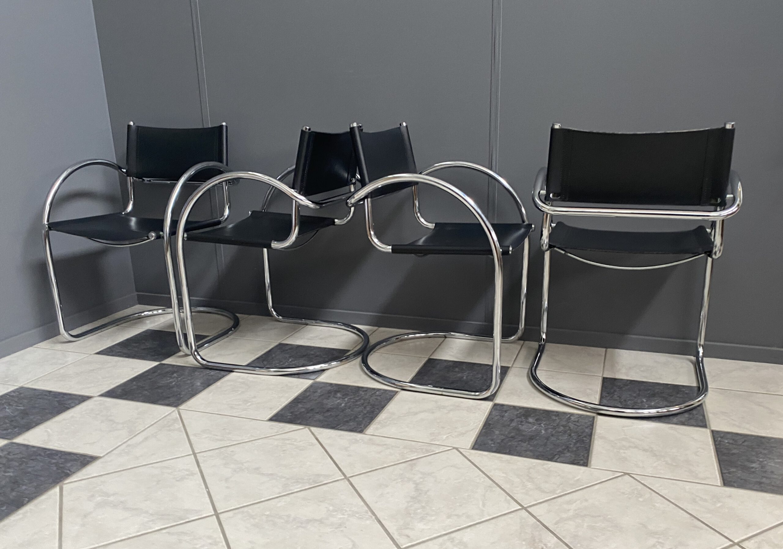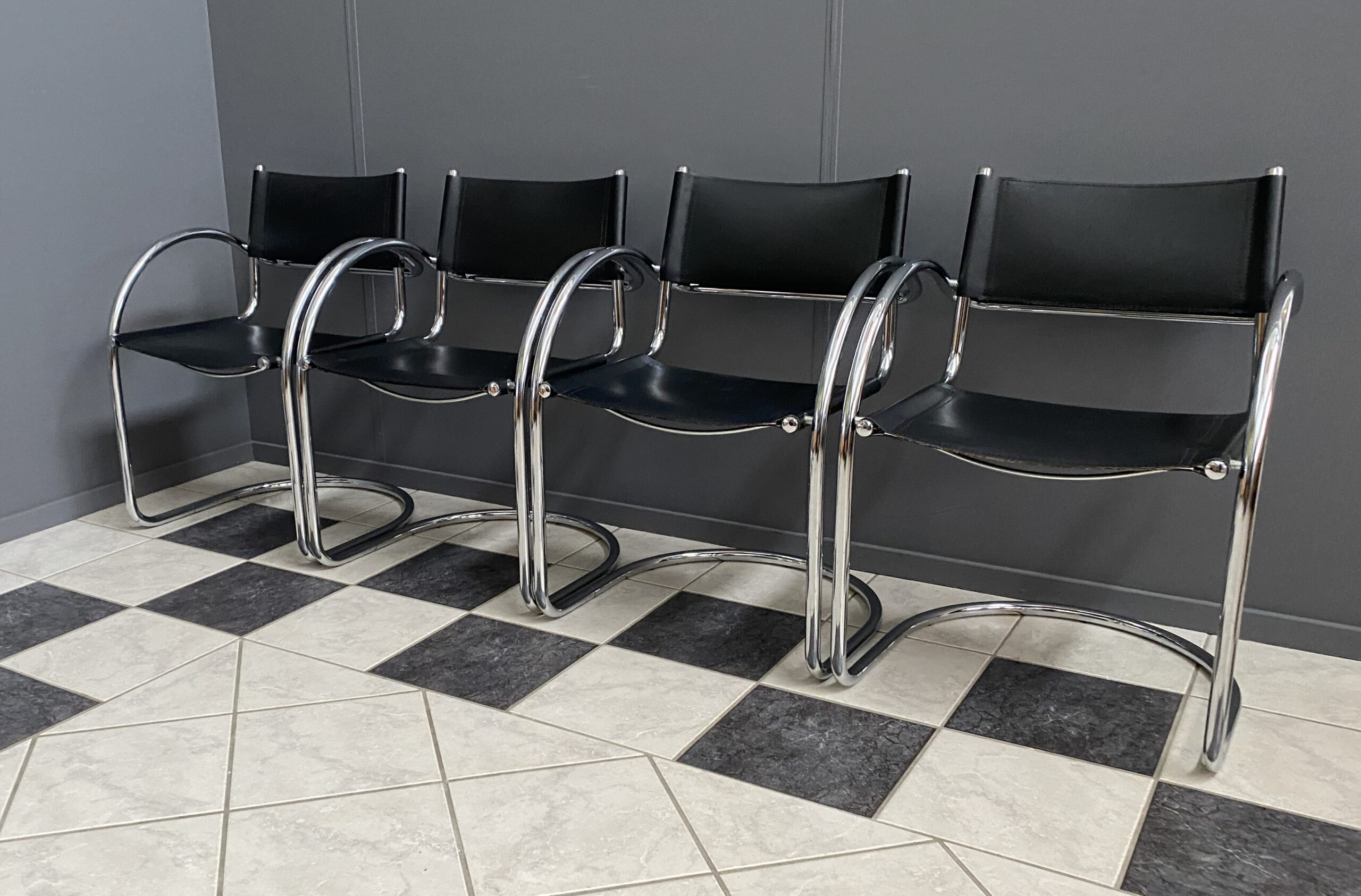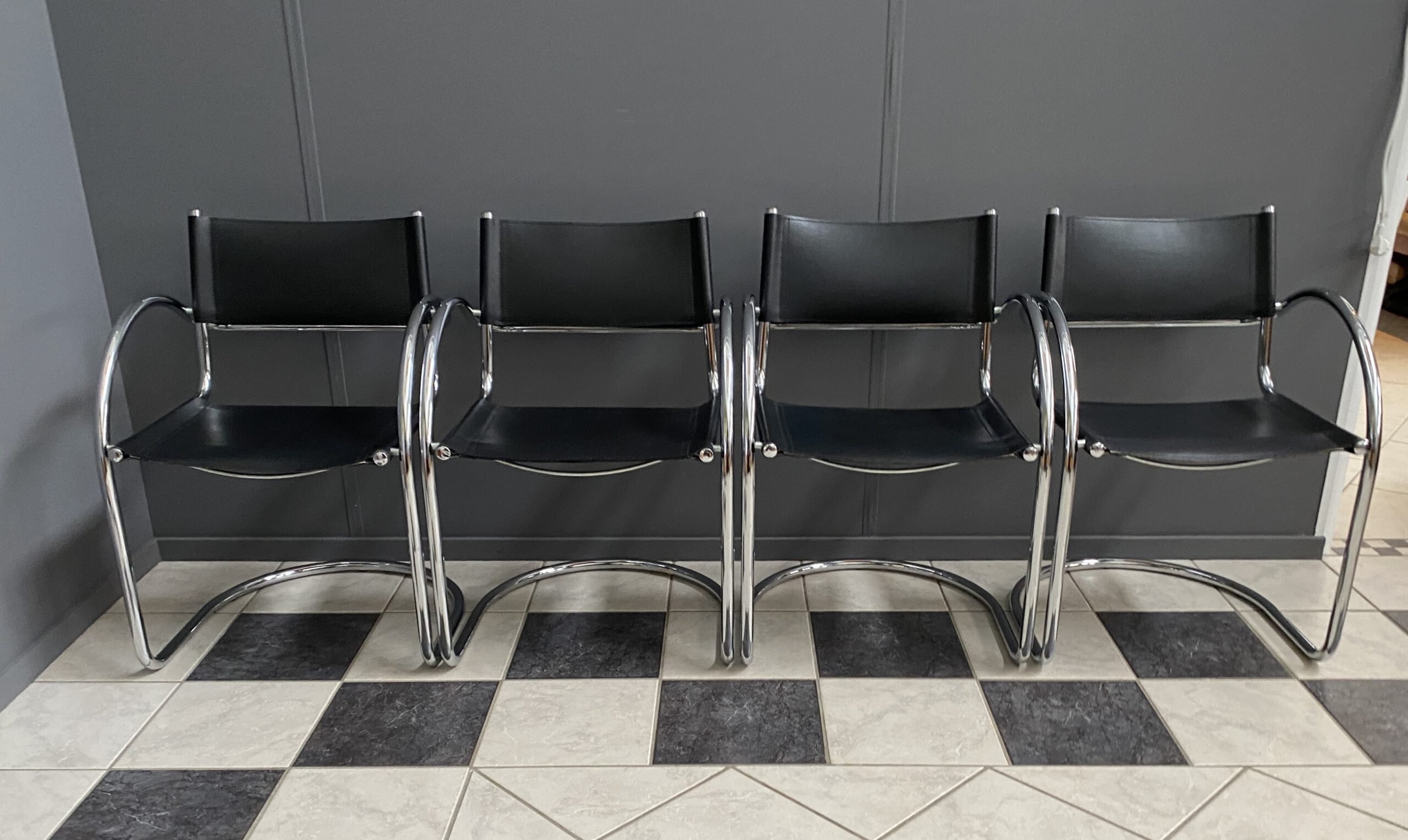 set of 4 chrome and Leather italian chairs