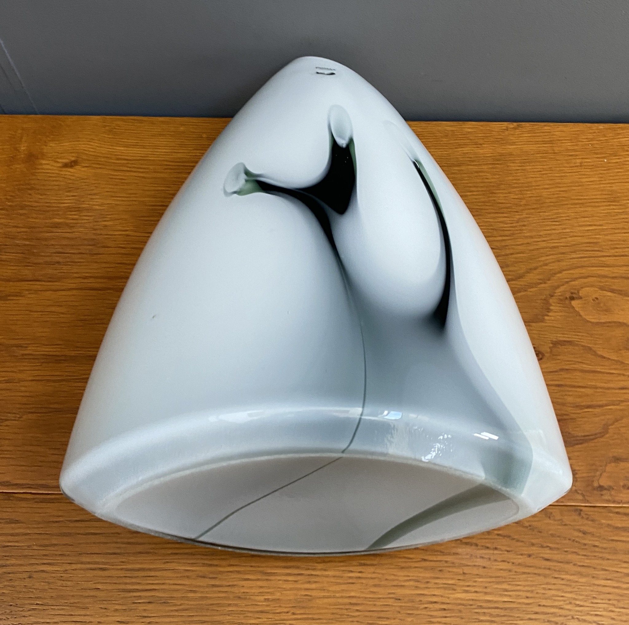 the inner green lining shows best in front of a window or a light, handmade unique decor.